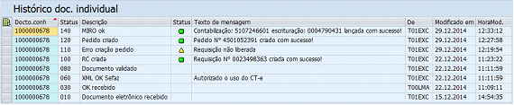Em caso afirmativo, o Status destes Documentos de conhecimento é alterado para ‘030’ (OK recebido).