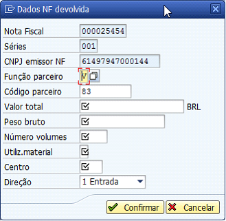 Confirmar os dados da NF devolvida clicando no botão