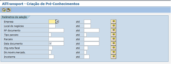 Essa transação é responsável pela criação dos documentos de pré-conhecimento. O pré-conhecimento tem como objetivo calcular o valor do frete para notas fiscais que ainda não estão vinculada a um Conhecimento.
