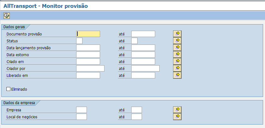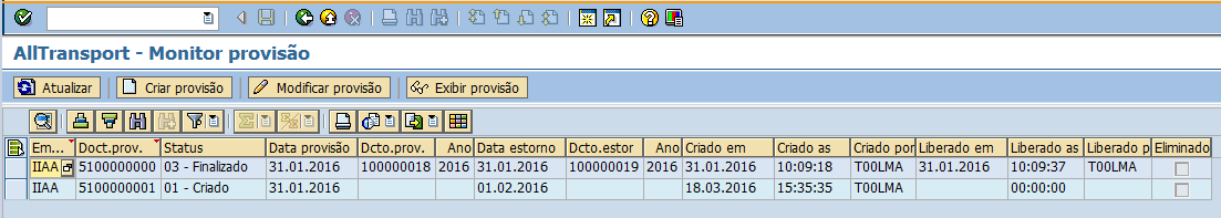 O Monitor de provisão permite o usuário visualizar todos os documentos já criados. Além disso é possível criar, modificar e exibir o documento de provisão.